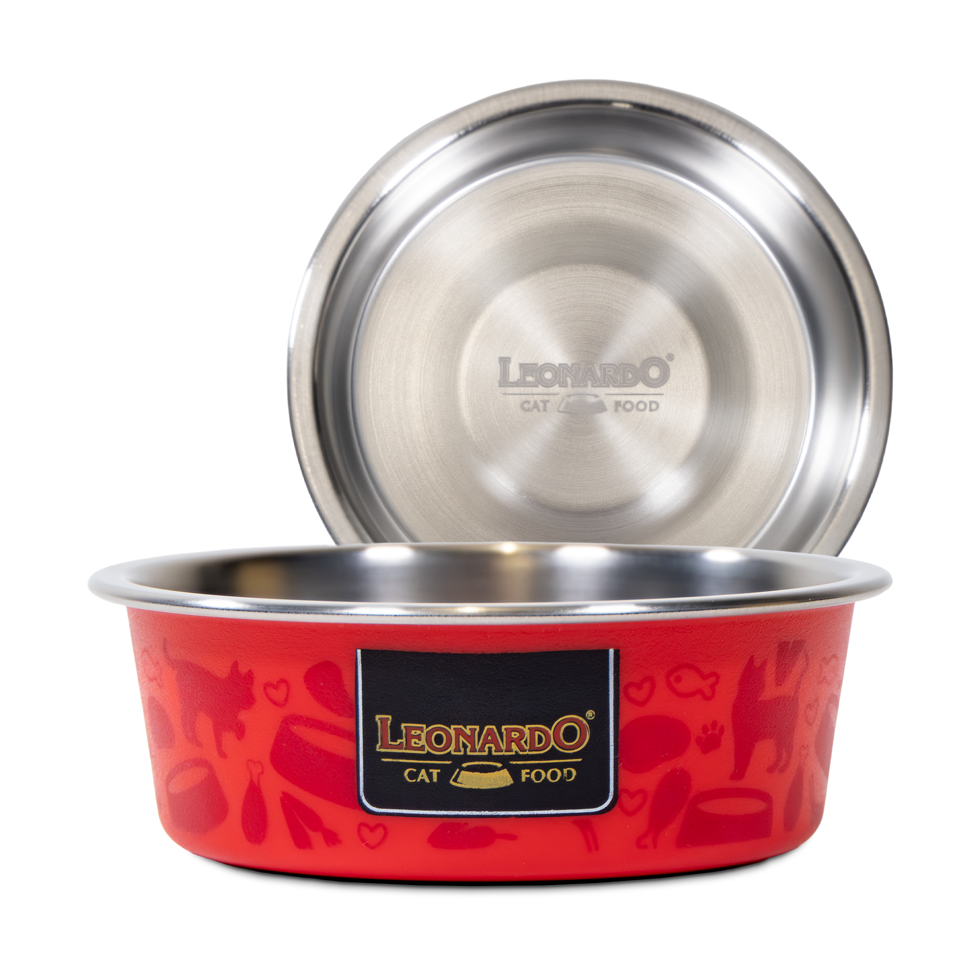 Formschöner und pflegeleichter (spülmaschinenfester) Fress- oder Wassernapf aus rostfreiem Edelstahl und hochwertiger Logoprägung, besonders rutschfest durch fest integrierten Gummiring.